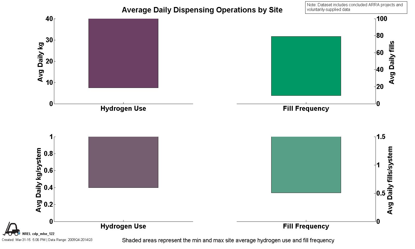 Average Daily Dispensed Hydrogen Map, CDP ARRA MHE 21, 4/14/2014