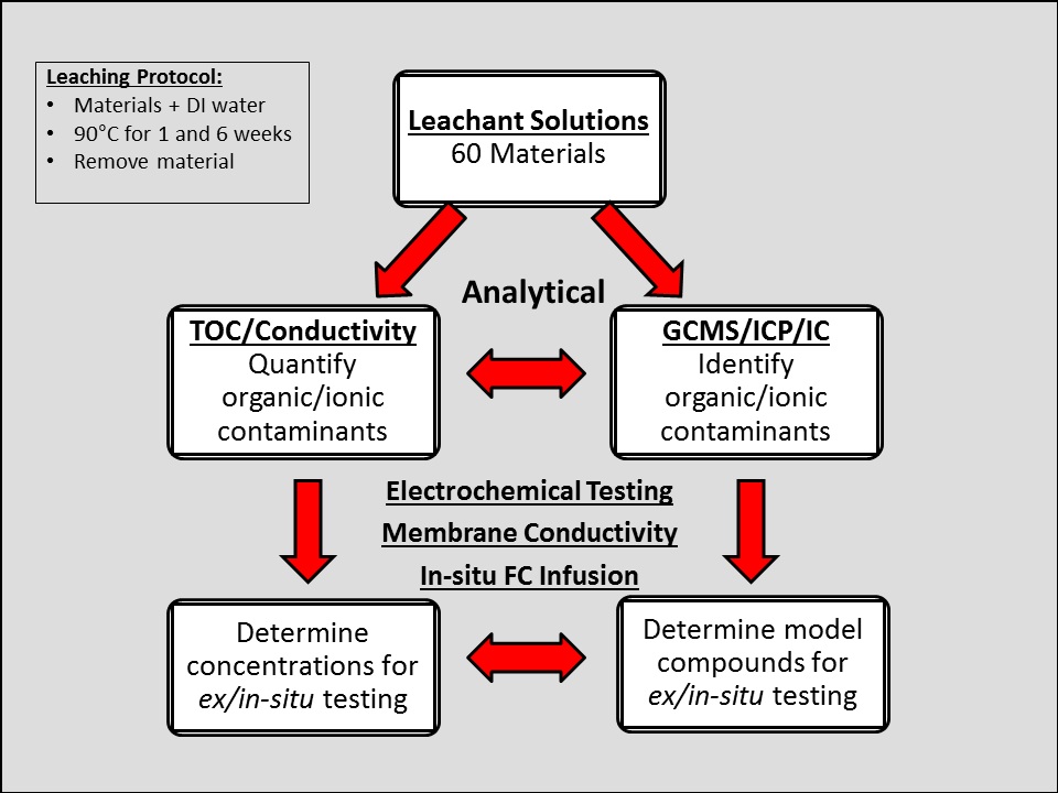 Our initial focus has been on commercially available commodity materials with a range of costs. These materials are generally developed for other applications for which common additives/processing aids may not be a concern, but they may present problems for fuel cells.